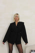 Blazer over nero foderato con spallina imbottita e dettaglio, chiusura bottone anteriore e laccio.
