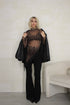 Maglia semi trasparente asimmetrica con dettagli in pizzo, con collo alto manica lunga.