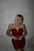 Abito modello a tubino aderente foderato con coppa preformata, scollo a V rigido con ferretto.
